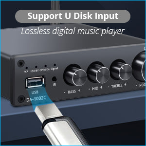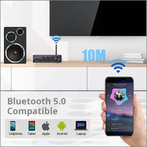 This Power Amplifier converts optical, coaxial, digital audio signals, Bluetooth signal into stereo analog audio signals and supports 192kHz/24bit HIFI stereo amplification. Help users solve the problem of connecting different audio interfaces with analog amplifiers, and make the music signal expression more natural, more realistic, Closer to the source sound quality, providing a perfect music experience for the majority of music enthusiasts.