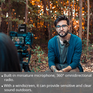 The transmitter has a built-in miniature microphone, 360° omnidirectional radio, high-sensitivity and ultra-clear sound pickup, broadcast-grade audio lossless transmission, no delay or signal loss, providing higher-quality audio performance