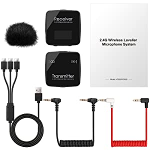 PROZOR 2.4GHz Wireless Lavalier Microphone System with Dual Transmitter & 1 Receiver Kit