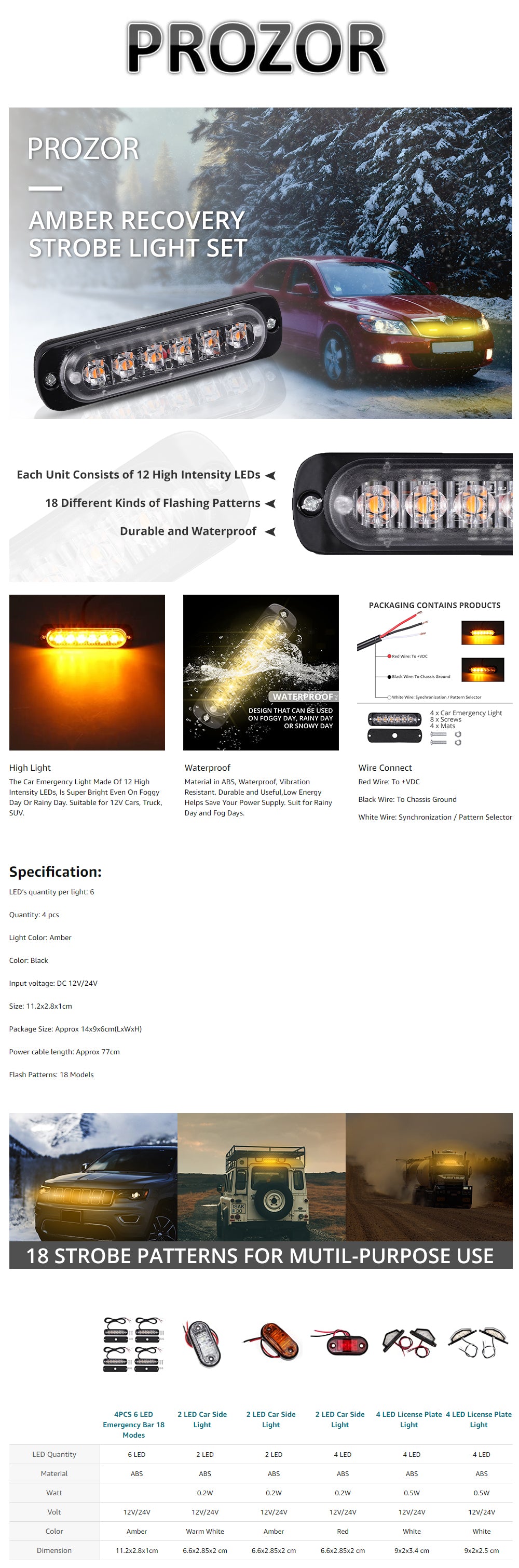 PROZOR Car Roof Light 4PCS 6 LED Emergency Bar
