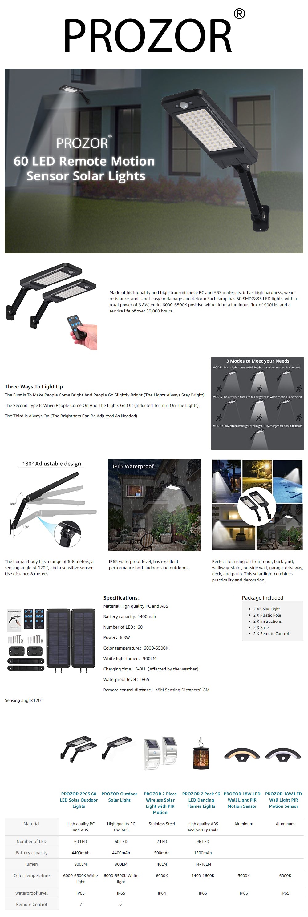 PROZOR Solar Outdoor Lights 2PCS 60 LED Remote Control Lights